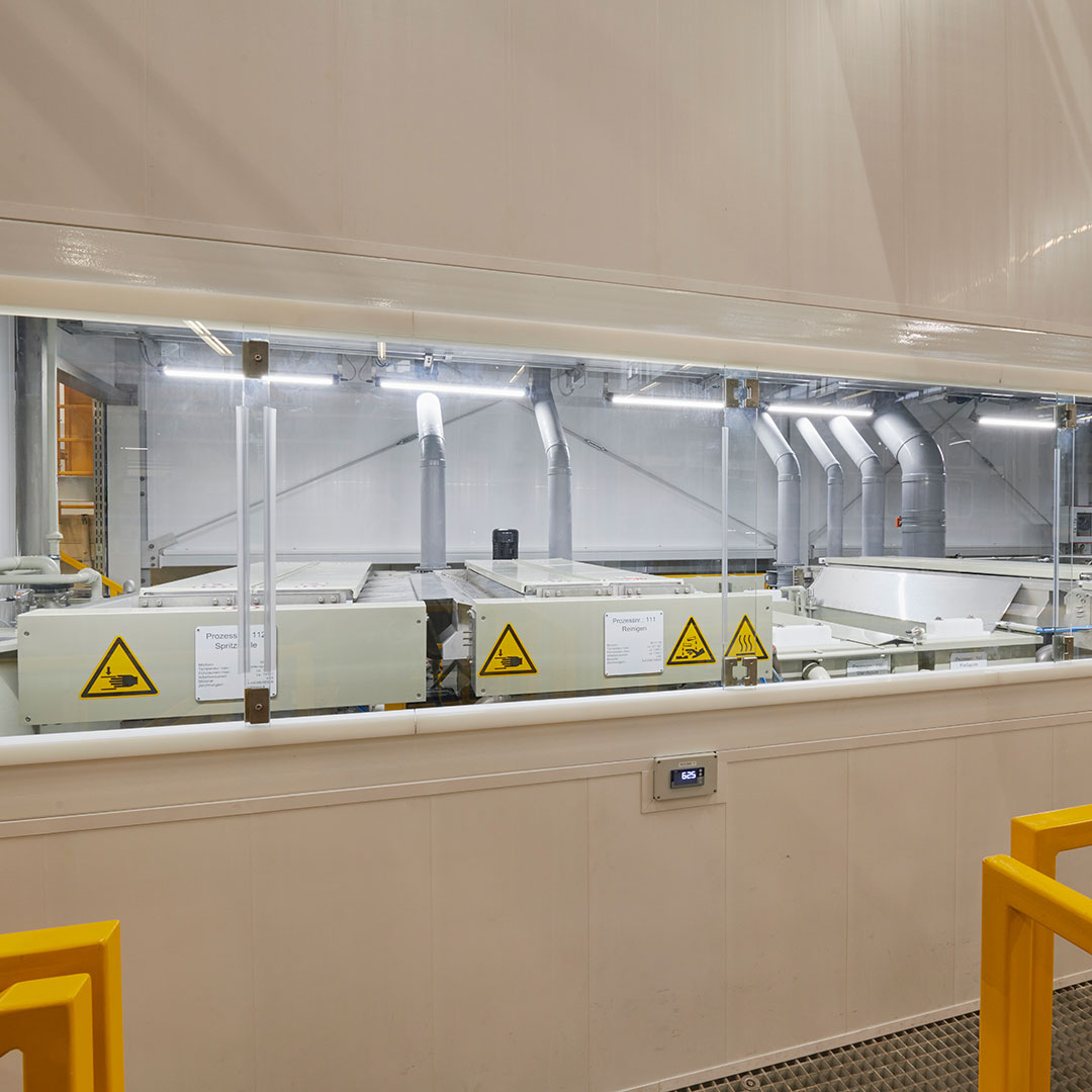 Die Anlage vereint vertikale Verarbeitung, automatisierte Beladung und vollautomatische Trocknung zu einem stabilen, reproduzierbaren Gesamtprozess. Alle Prozessschritte – vom Einhängen der Blisks über die Reinigung bis zur Trocknung – sind auf begrenzter Fläche logisch angeordnet und gewährleisten eine schonende Bauteilbehandlung bei gleichzeitig hoher Prozesssicherheit. Modulare Baugruppen und definierte Schnittstellen ermöglichen zudem eine spätere Verlagerung der Anlage.